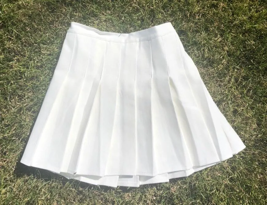 White pleated tennis skirt: this skirt is so comfortable and has stiff pleats to prevent them from flattening out. Great quality and looks great with any outfit! Message me with any questions 💖 I also have a black skirt on my page! ✨ length: 15 inch ✨ highwaisted ✨ spandex shorts underneath ✨ 4.50 next day shipping ✨ bundle for discounts! S: 26/27 inch waist #pleated #tennisskirt