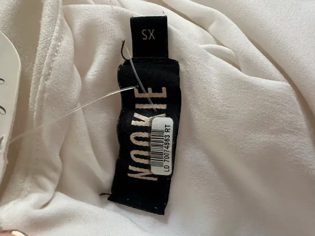 Very pretty simple white maxi dress. This would be perfect for a rehearsal dinner look. I got this dress from a bridal store sample sale. Originally over $200. There are two small marks on the back (pictured) but I believe they would come out in the wash.