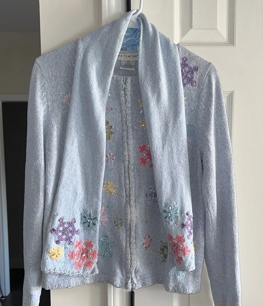 White Stag Light Blue Sweater with Floral Embroidery and detachable scarf - $30 - From Laurie