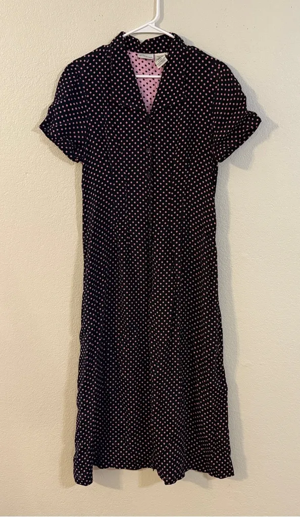 White Stag Polka Dot Black and Pink Midi Dress Women’s Sz M Size M - $40 - From ANT Tribe