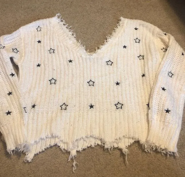 White sweater with black starts Size M - $22 (56% Off Retail) - From Rachel