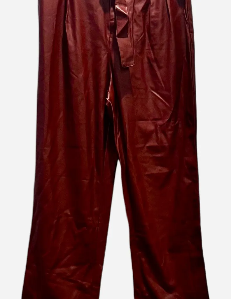 Chic maroon pants with a straight leg cut. Features a fashionable tie waist. Ideal for any occasion.