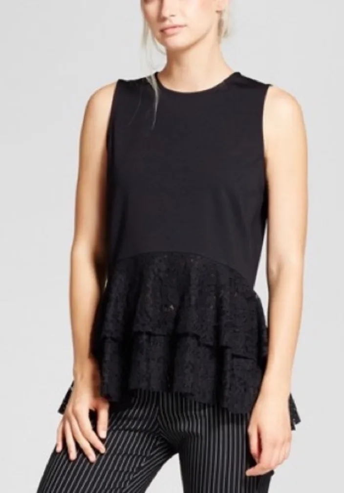Absolutely love this lace peplum sleeveless top! Lace on the bottom Keyhole back PRICE IS FIRM. 🖤