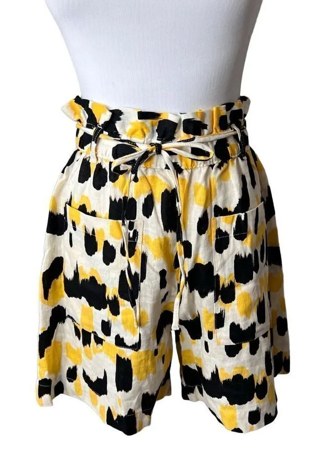 Who What Wear Linen Paperbag Shorts Yellow Animal Print sz XS. Linen blend paperbag shorts with tie... Show more