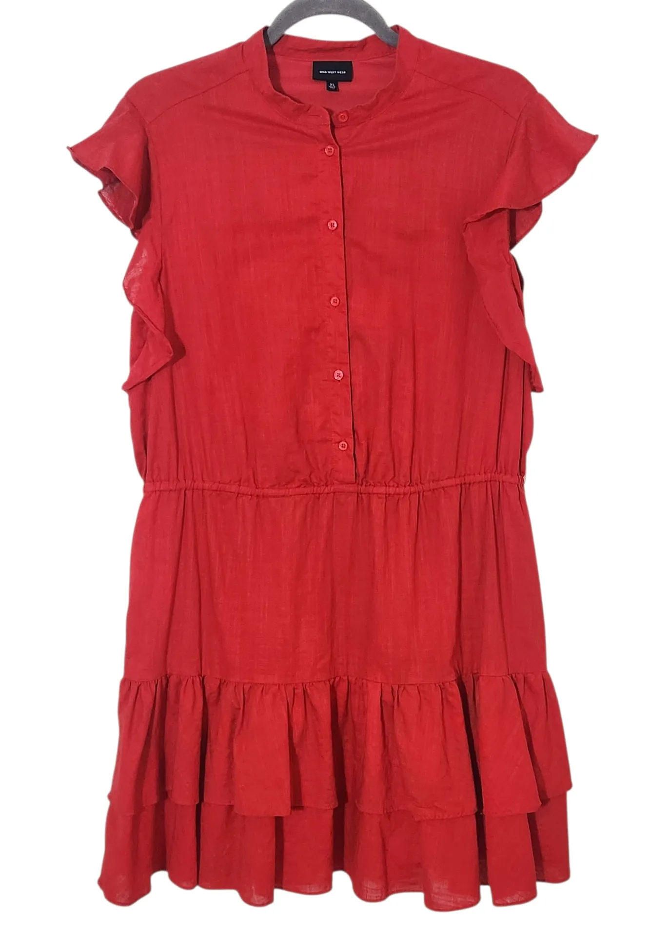 Who What Wear red ruffled dress features a half-button-down front, tiered ruffle details, and 100% c... Show more