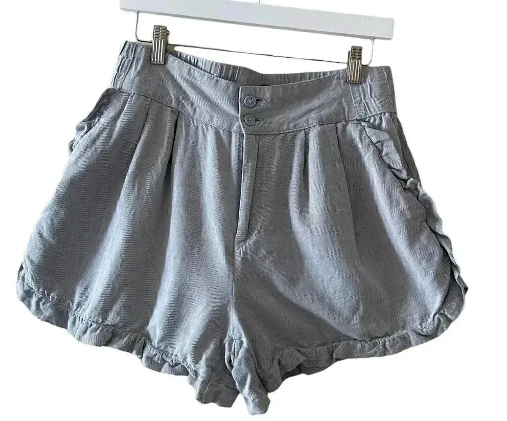 Who What Wear Cotton High Waisted Scallop Blue Lightweight Elastic Waist Pockets Shorts Sz 8 Measur... Show more