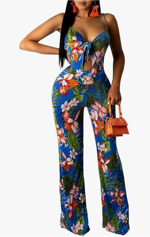 Wide Leg Casual long Jumpsuits Spaghetti Straps one piece Floral NEW siz… Green - $14 New With Tags - From Joanna