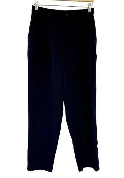 Elevate your wardrobe with these stylish wide-leg navy blue trousers, designed for the modern woman. Featuring a flattering high waist, these trousers provide both comfort and sophistication, while the practical pockets and belt loops add functionality to your look. With a 28-inch waist, they offer a tailored fit that pairs perfectly with a variety of tops, making them a versatile addition to any outfit. Embrace effortless elegance and make a statement with these must-have trousers.