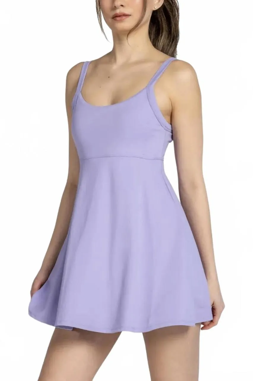 Scoop neck Built-in shorts 78% polyester, 22% spandex 15" ptp 31.5" length A dress made for performa... Show more