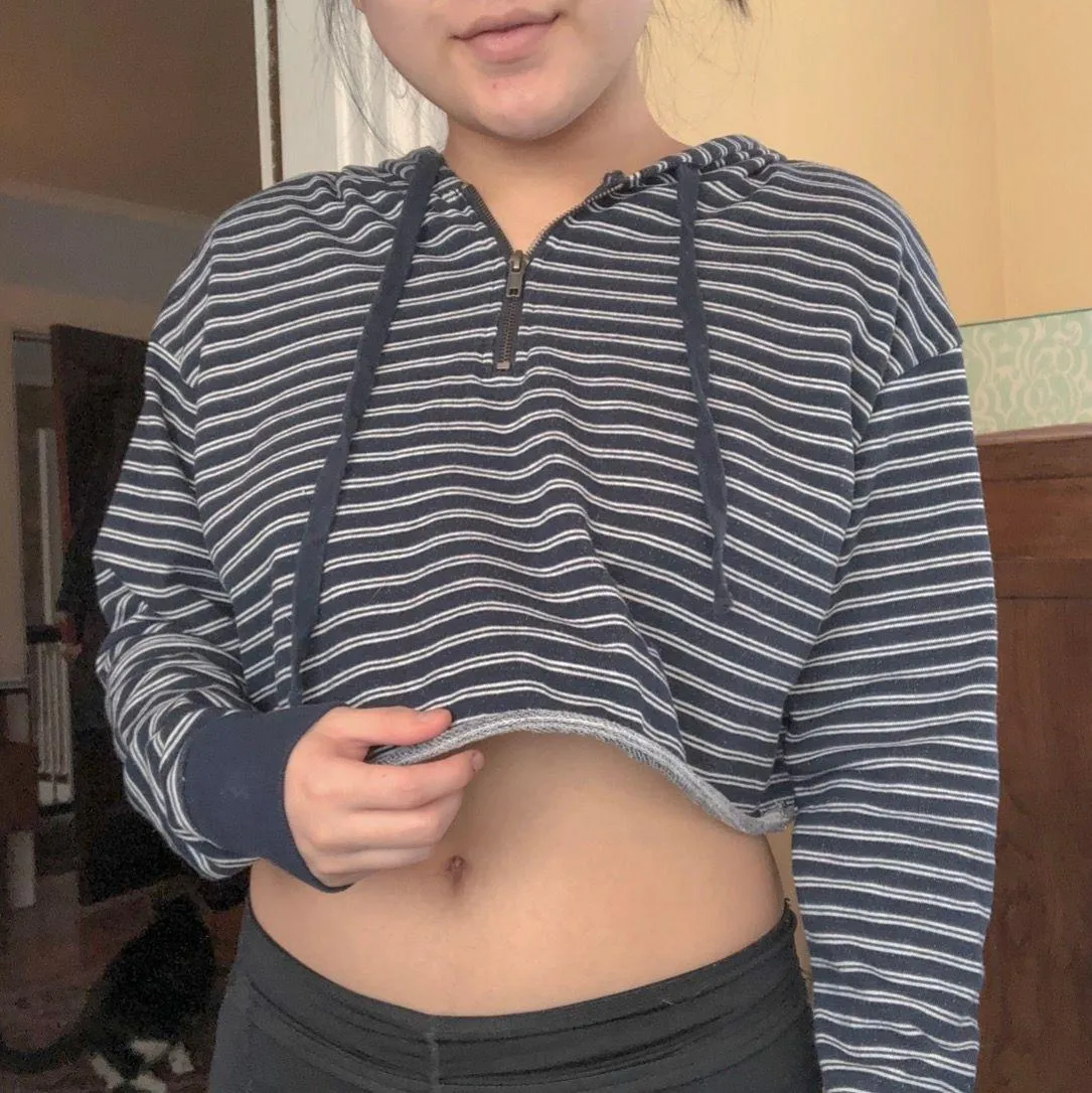 Navy and White striped cropped hoodie w quarter zipper || In great condition w no flaws excellent
