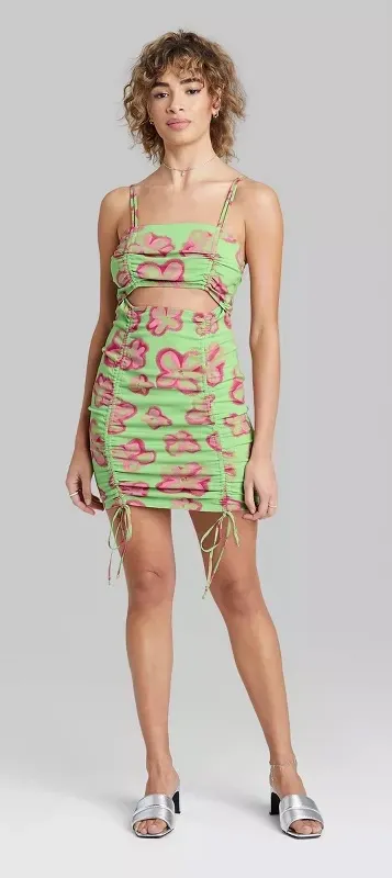 Wild Fable bodycon mini dress with stomach cut-out and ruching in front and back with adjustable tie... Show more