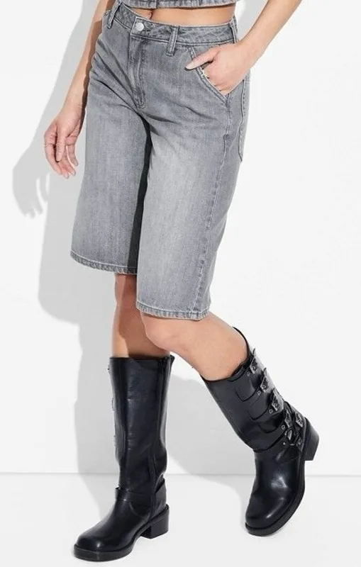 . Relaxed fit silhouette. Knee length. Belt loops. Zip fly & button closure. Side & back pockets. R... Show more
