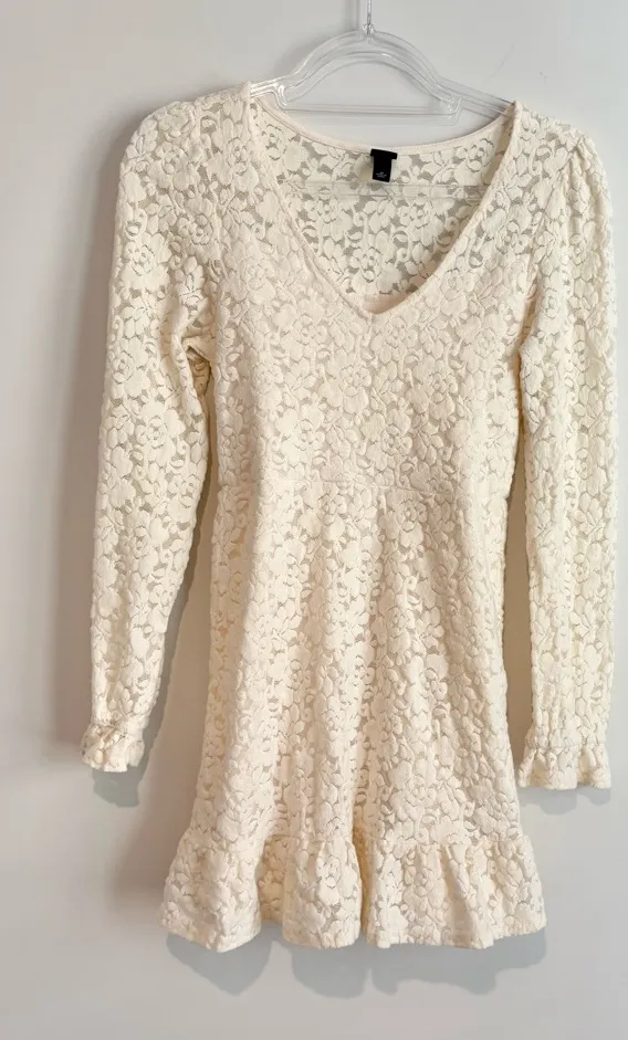 Wild Fable Dress Mini Ruffle Lace Overlay Long Sleeve V Neck Ivory XS. V neck with ruffle hem. Good... Show more