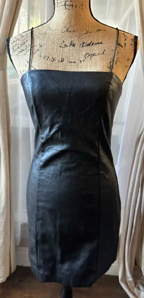 Wild Fable Black Faux Leather Short Body Con Spaghetti Strap Dress Size Small Back silver zip closu... Show more
