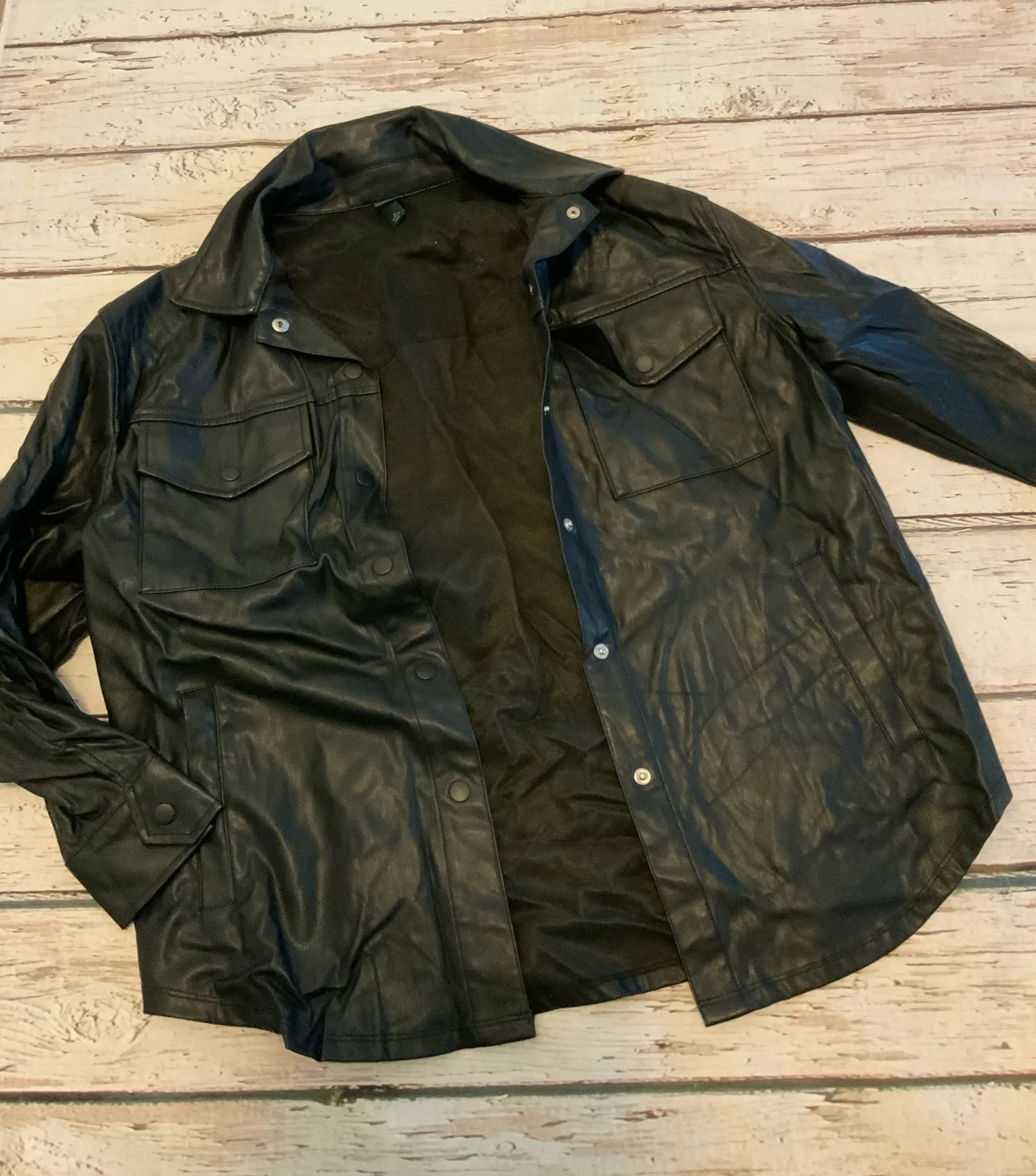 The Wild Fable Faux Leather Snap Front Shirt Jacket Shacket in Women's XS Black is a versatile and s... Show more