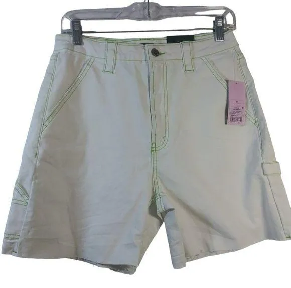 Wild Fable Highest Rise White Denim Neon Green Stitching Utility Shorts Size 8 2 slash pockets, 2... Show more