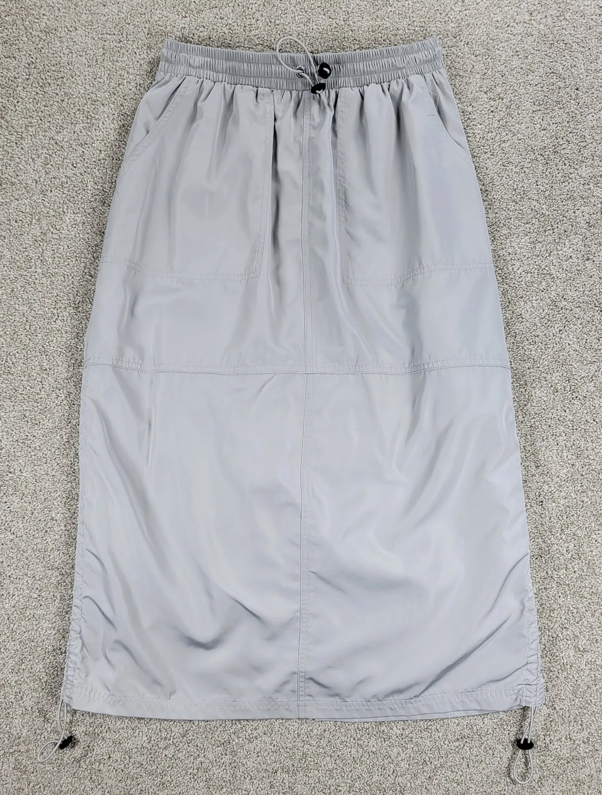 Wild Fable Womens Gray Elastic Waist Ruched Drawstring Corded Slit Pockets Outdoorsy Utility Midi Sk... Show more