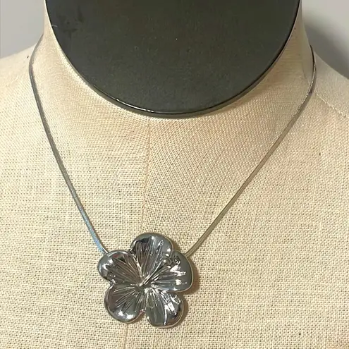 Wild Fable Rhodium necklace Gray silver flower pendant herringbone fashion jewelry new Size 16” Imp... Show more