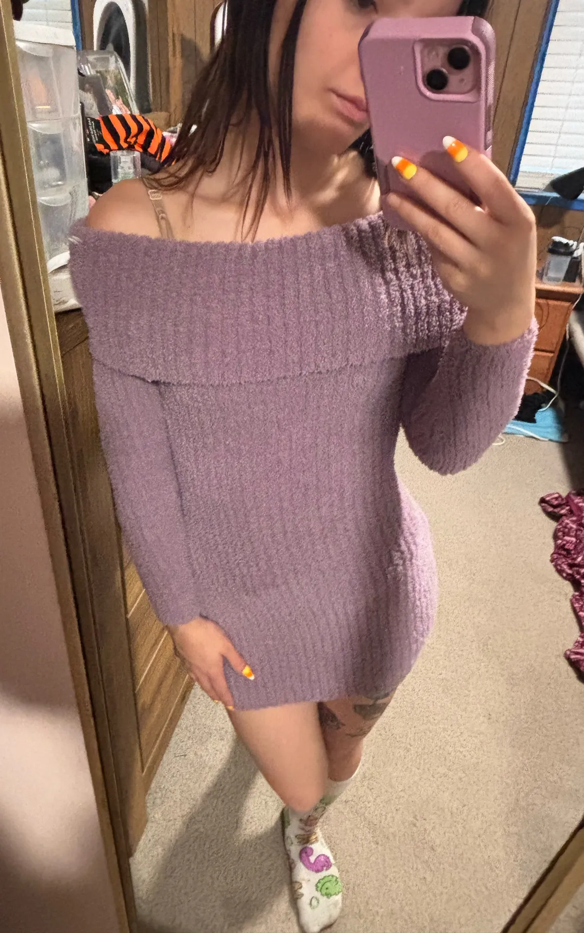 Wild Fable off-the-shoulder long-sleeve fuzzy mini sweater dress xxs Purple - $10 - From Gracie