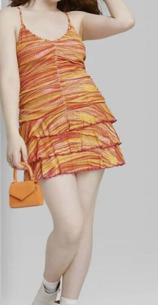 WF Women's Sleeveless RUCHED FRONT TIERED DRESS PINK ZIG ZAG SIZE LARGE