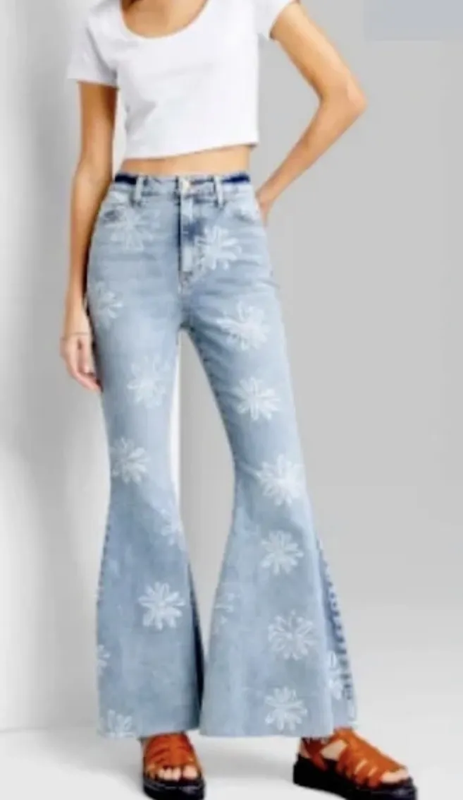 Wild Favle floral bell bottom jeans Blue Size 2 - $10 - From emx
