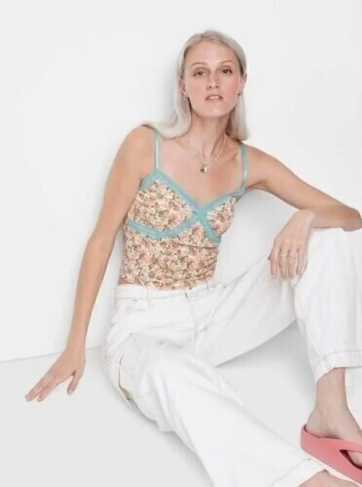 WILD FABLE Women's Lace Trim Tiny Tank Top - Floral Pink XXL