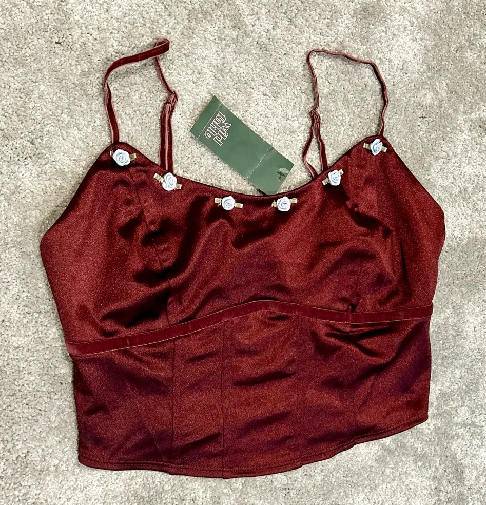 New with tags! The Wild Fable Women's Rosette Satin Corset Tank Top in Burgundy is a stylish and v... Show more