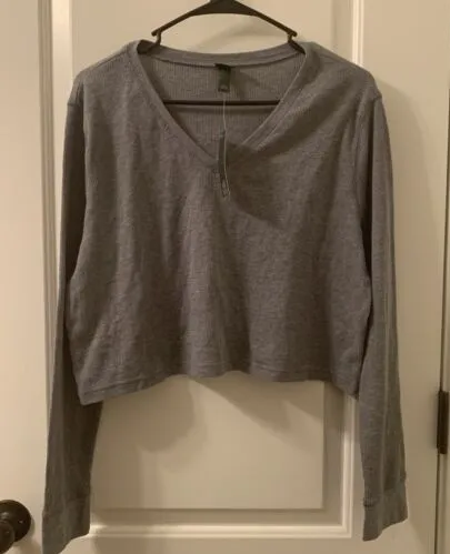 Wild Fable Women's Long Sleeve V-Neck Waffle Boxy Top Shirt Gray Size Large New with tag. This shirt... Show more