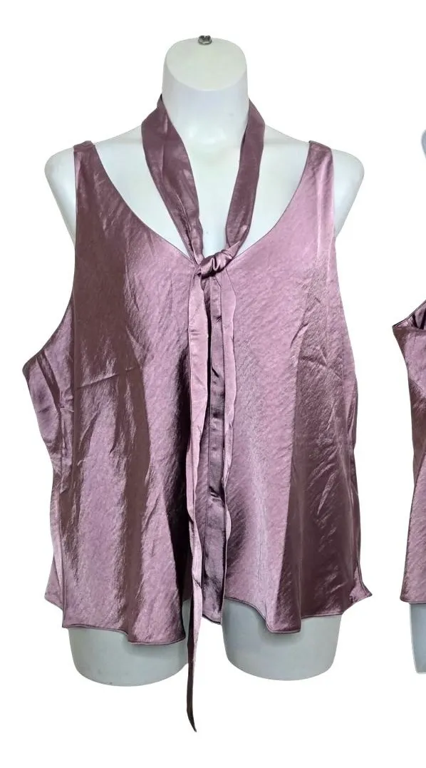 The ultimate layering piece in a soft flowy satin fabric. With a v-neck cut, the adjustable straps allow for more or less chest to show when and how you want. Use the non-attached scarf around the neck, in the hair, or attach to a bag or small accessory. 100% Polyester Relaxed fit V neck Adjustable shoulder straps with 6 button holes Raise or lower front neck Straps can be worn straight or crossed Bias cut Internal french seams Removable self-fabric scarf