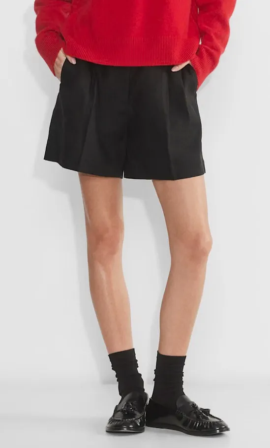 Wilfred Aritzia Black The Effortless Short Linen Size 4 Color Black Fabric Tencel Linen Back welt pockets Darted back waist for shaping Zip fly with hook-and-bar closure Fabric is created with an intentionally uneven texture for a perfectly imperfect Pleated front Wide leg opening High waisted No holes or stains 0101