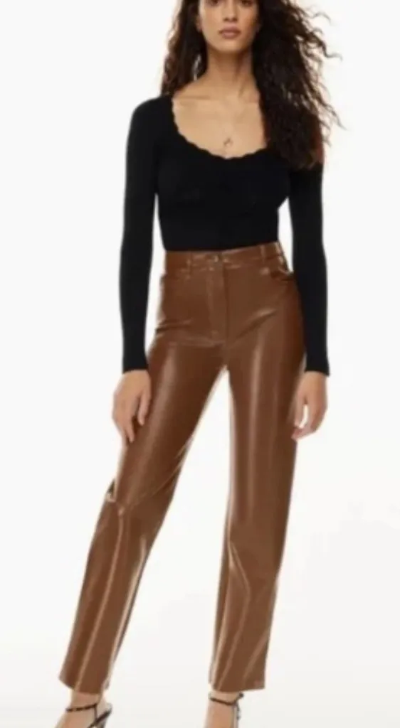 Wilfred the Melina brown vegan leather straight leg high rise pant size 8 Excellent pre-owned no fl... Show more