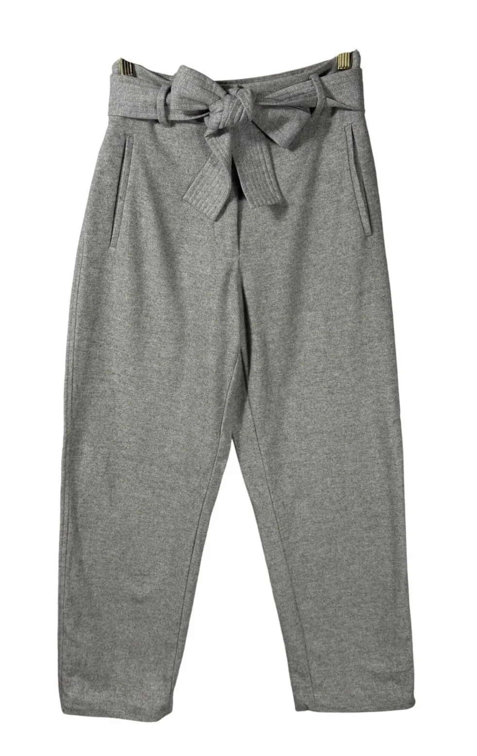 Chic and elevated Wilfred by Aritzia trousers in a beautiful heather gray wool blend with a flattering high-rise paperbag waist and removable self-tie belt. These are perfect for workwear, casual chic outfits, fall/winter layering, and minimalist capsule wardrobes. Features a polished trouser look with a cozy feel—great with a fitted sweater, bodysuit, or blazer! • Pockets: Side pockets + back welt pockets • Closure: Zip fly with hook/eye style closure Fabric: • Body: 68% wool, 25% nylon, 5% cashmere, 2% elastane • Pocket lining: 100% cupro rayon • Care: Professional dry clean only • Fabric made in Italy • Made in China Condition: Pre-owned, good condition with no major flaws noted. (Please see photos for details.) Measurements (Flat Lay) • Waist: 13.5" • Rise: 11" • Inseam: 25" • Leg opening: 7" Minimalist, Classic, Workwear, Quiet Luxury, Capsule Wardrobe, Parisian Chic, Business Casual, Cozy Luxe