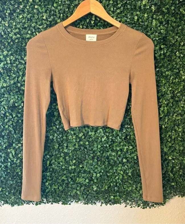 Wilfred Free Khaki Green Ribbed Long Sleeve Crop Top Sz Small Tan - $18 - From Madison