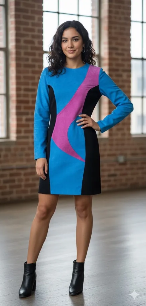 Wilsons 80s 90s suede leather blue pink black‎ long sleeve dress mini medium Black - $150 - From Tiffany