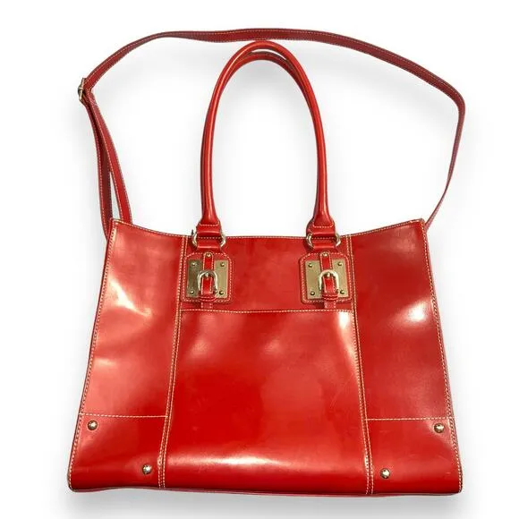 Wilsons Leather Womens Satchel Tote Bag Handbag Purse Red Leather Large - $63 - From Tiffany