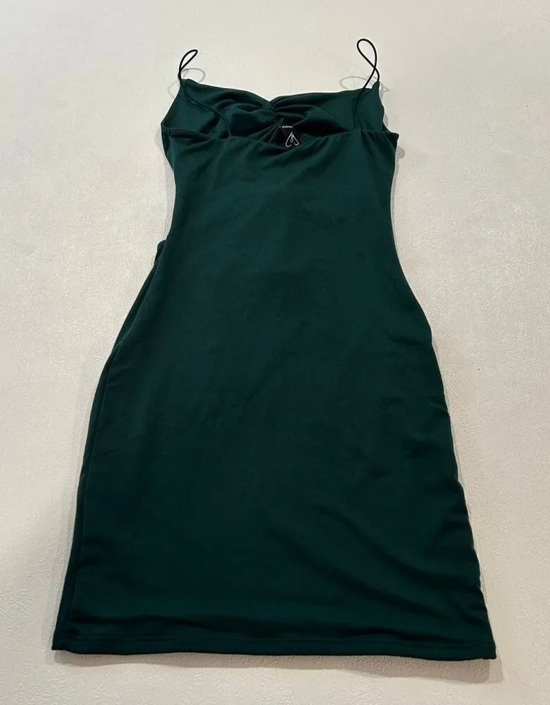 Elegant Windsor mini dress in a deep forest green shade. Features a ruched front with a small cutout... Show more