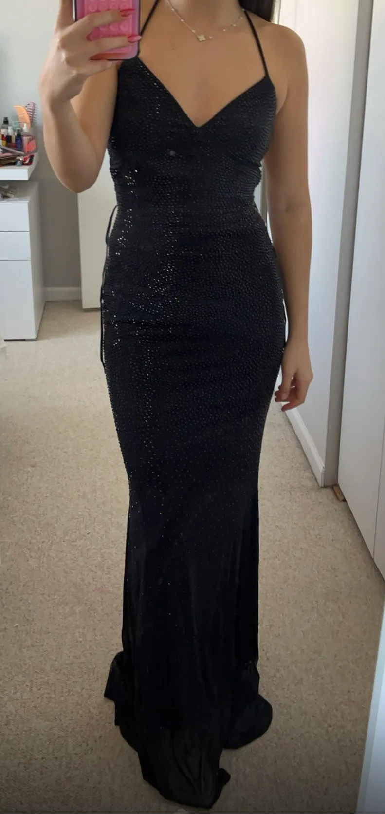Dress is in excellent condition. I am 5’1.5 and wore 3 in heels for this. ‼️dress was hemmed, aroun... Show more