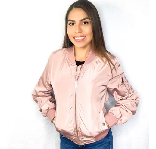 Miss London Black Label Pink Satin Bomber Jacket Size small Good used condition Approximate measur... Show more