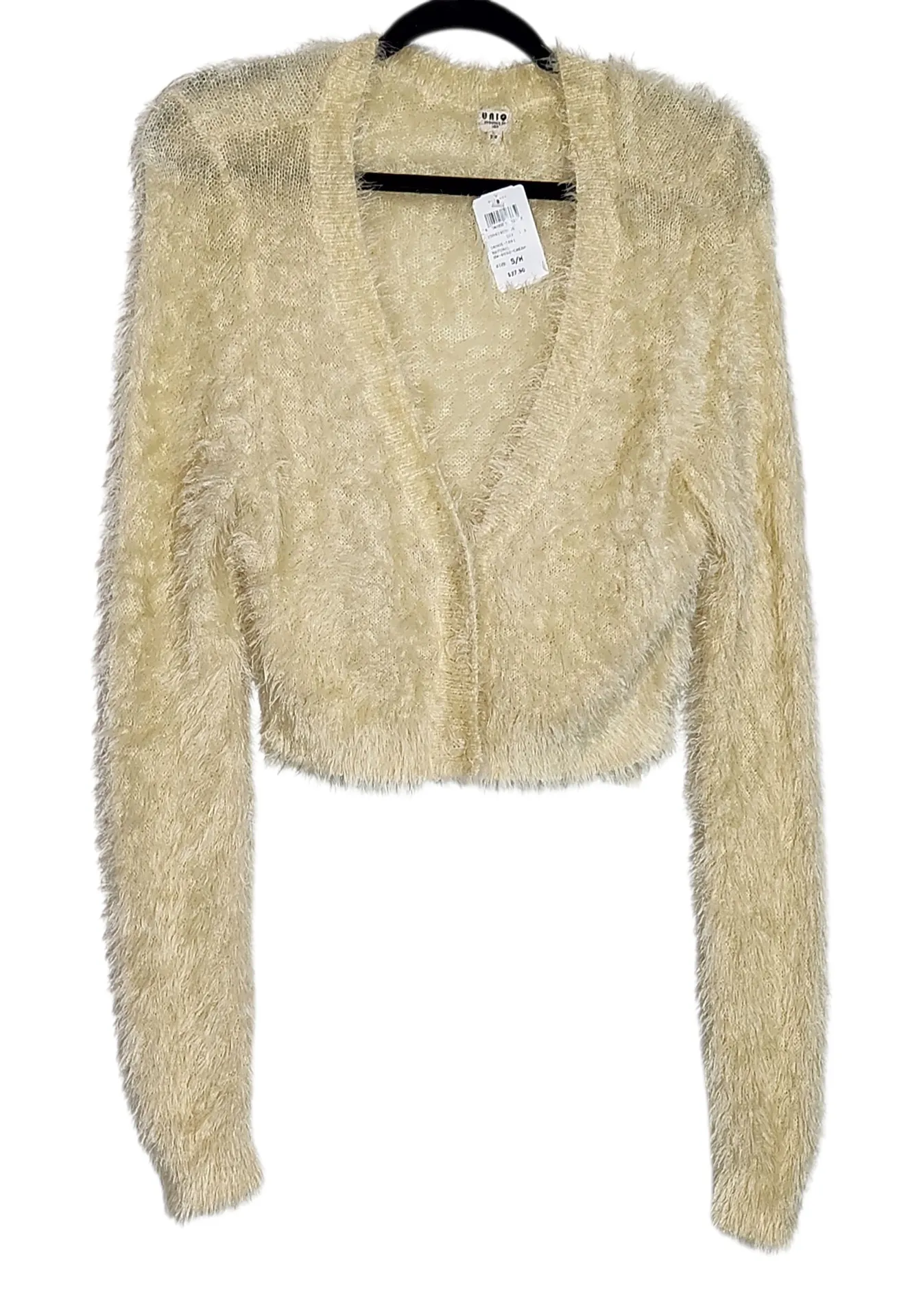 Uniq fuzzy cardigan in cream with long sleeves and lightweight Nylon material. Same-day shipping for... Show more