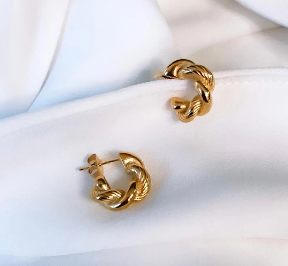 New 18K Gold Plated Twisted Open Chunky Round Hoop Earrings Hypoallergenic Tarnish resistant Stainless steel Lightweight, does not pull Weight: 7.5g Size: 17.1mm All items ship within 1-2 business days. Thanks