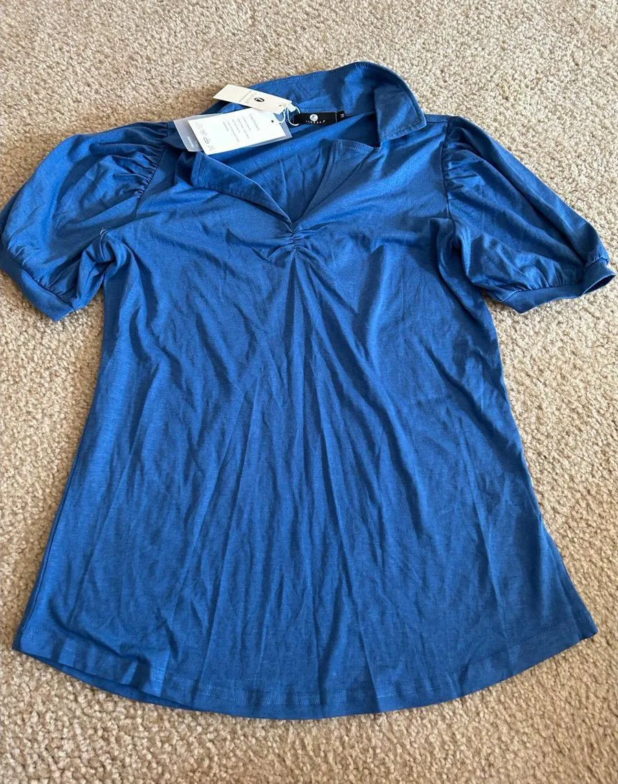 Woman shirt Short Sleeves Collar small Puffy Arms Cute Blue - $12 - From Dorota