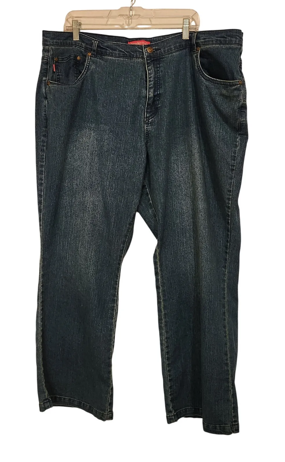 Great used condition Measurements: Waist laid flat = 22.5 in Rise = 12.5 in Inseam = 30 in Classic medium-wash denim jeans with a high-rise waist and straight-leg fit for everyday comfort and easy styling. A versatile staple that pairs well with casual tops and layers. casual clasic denimwear plussize womenswear basic trendy streetstyle everyday laidback casualwear summer chic relaxed easywear