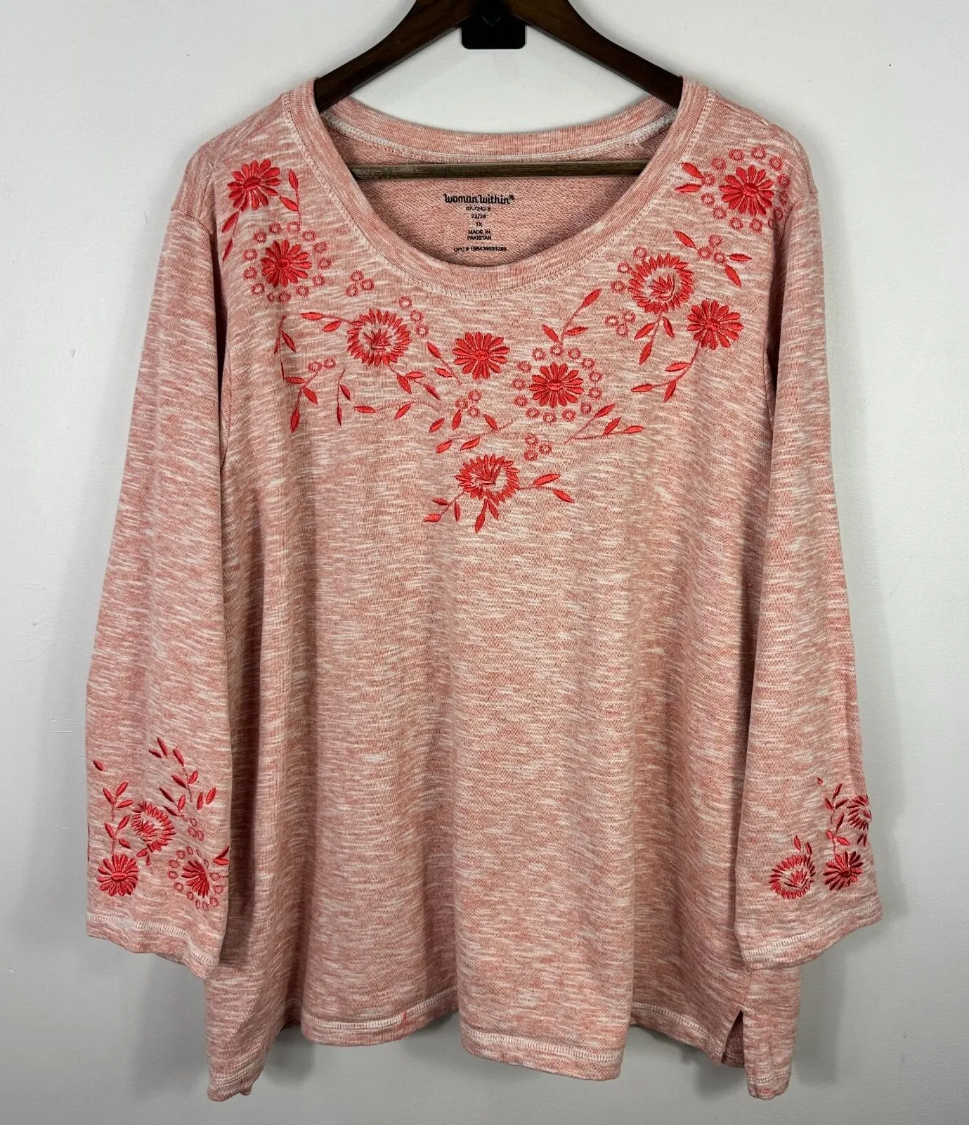 Woman Within Floral Embroidered Top Womens Plus 1X Pink Boho Cottage Romantic - $20 - From Rachel