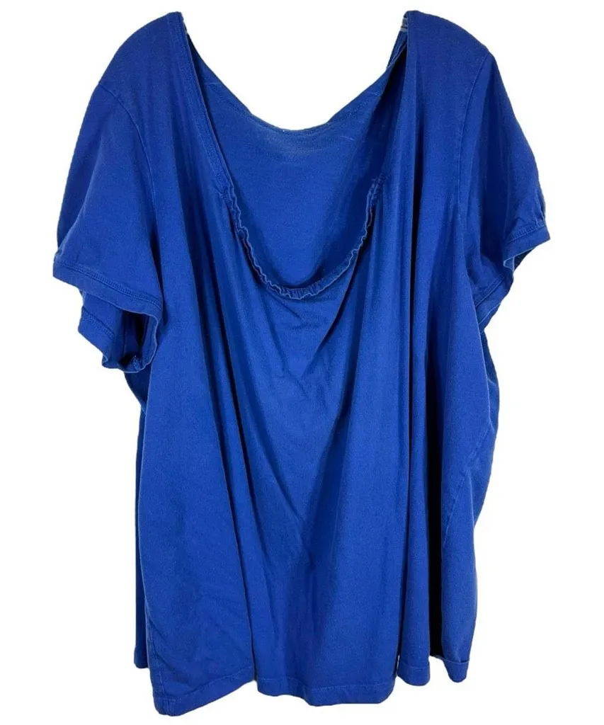 Woman Within Plus Size 4X 34W 36W Top Blue Scoop Neck Short Sleeve Cotton 889 Chest: 36” across Len... Show more