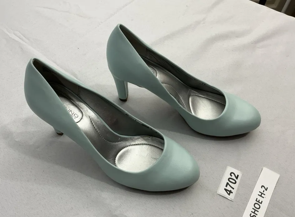 The Women's Bandolino Flexible Lantana Slip On Pumps are a stylish and comfortable choice for women looking for a casual yet chic heel. These size 7M pumps feature a slip-on closure for easy wear, a faux leather upper in a vibrant baby blue color, and a comfortable medium width. The Bandolino brand ensures quality and style, making these pumps a versatile addition to any woman's shoe collection. Perfect for adding a pop of color to any outfit, these pumps are a must-have for those who appreciate both fashion and comfort. These pumps are new with defects! They have dimples on the heel, slight scratch, and the inner sole is ripped ……happened when I took the sticker off! See photos……none are terrible!
