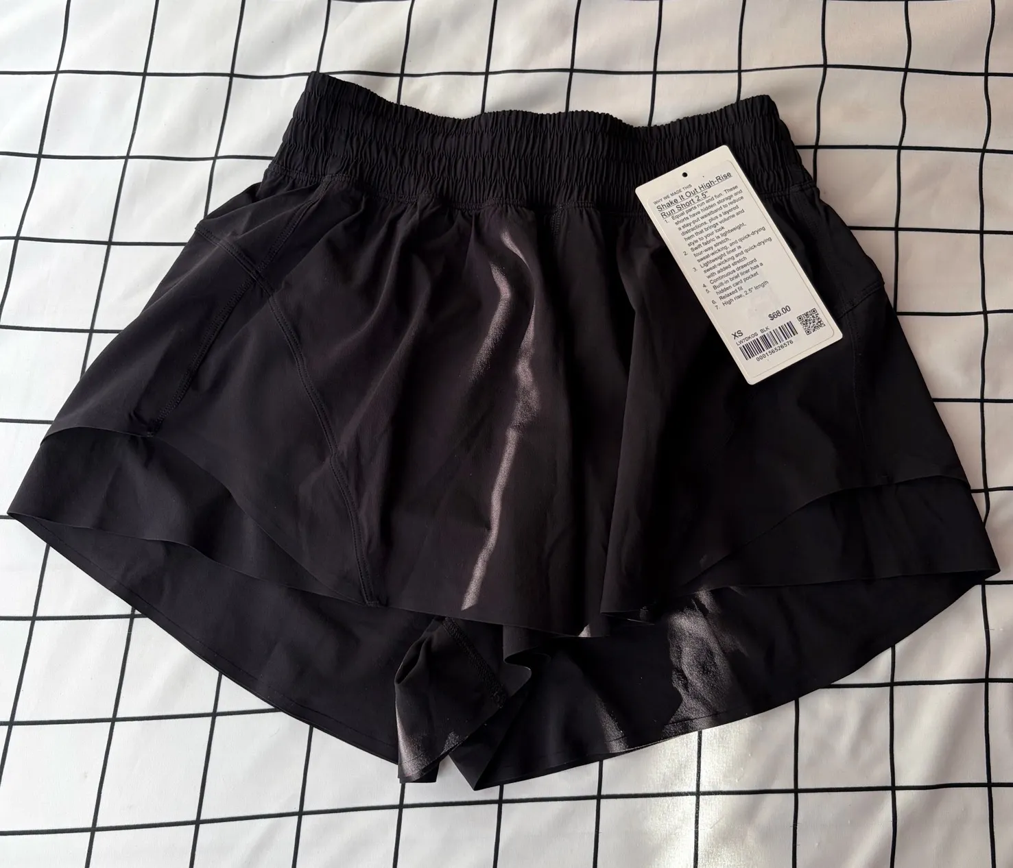 The product is a pair of women's black Lululemon high-rise shorts with a length of 2.5 inches and a... Show more