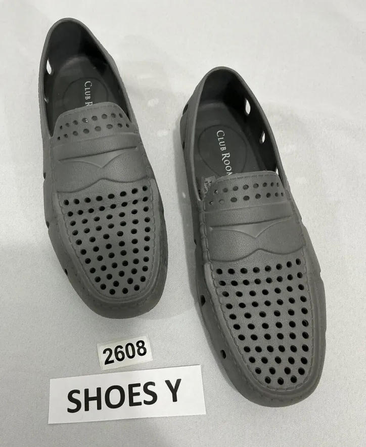 The Women's Club Room Atlas Perforated Driver Gray Rubber Loafer is a flat shoe made for women with a size of 7M. The shoe has a gray color and is made of rubber. It is a loafer style shoe with a perforated design. These shoes are pre owned and look to be in excellent condition!