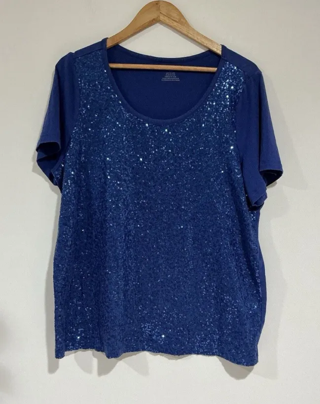 Add some sparkle to your wardrobe with this beautiful blue DKNY T-shirt. The plus size, short sleeve... Show more