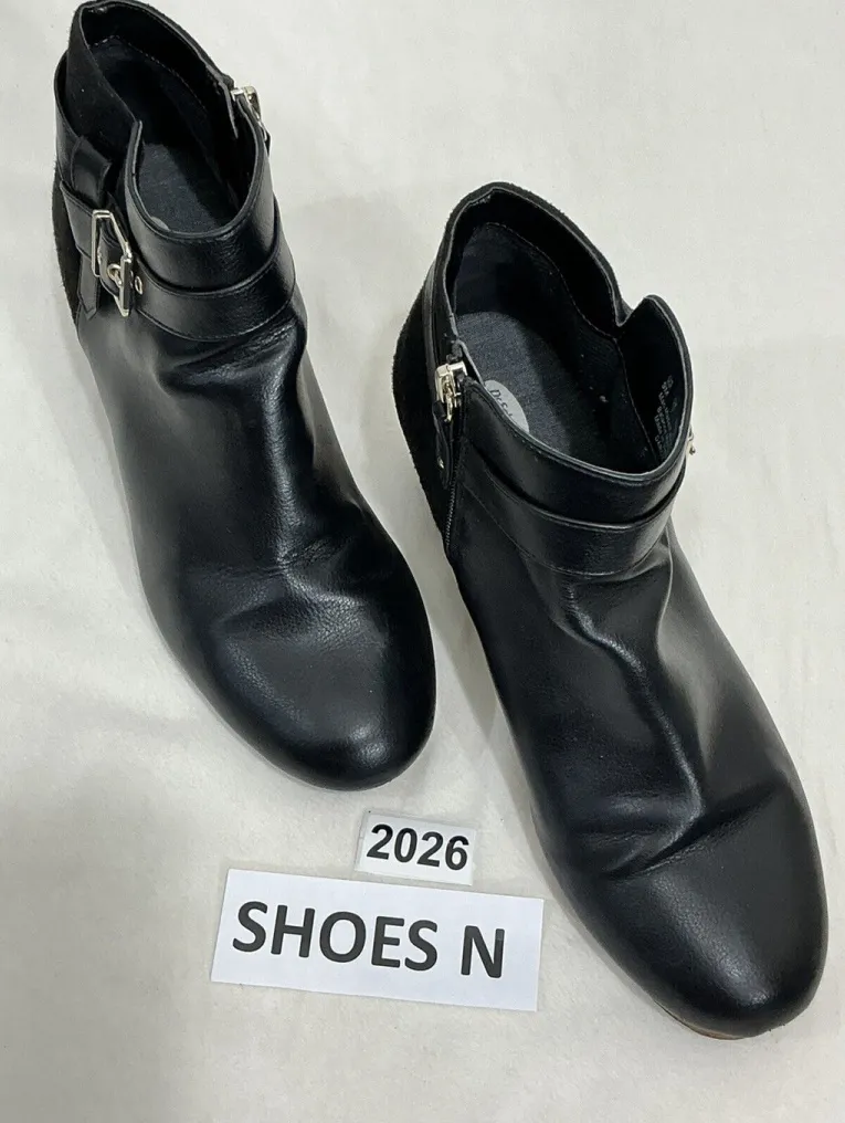 Elevate your shoe game with these stylish and comfortable Dr. Scholl's Be Energized Foam Technology Darcy booties. Crafted with a faux suede and leather upper, these boots feature a zip up closure for a secure fit. They have a 2” wedge heel. These black booties are perfect for any occasion and are sure to complement any outfit. The Darcy character adds a touch of personality to these shoes, making them a great addition to any wardrobe. Available in women's US shoe size 9 M, these boots are a must-have for any fashion-forward woman. These boots are pre owned and in good condition!