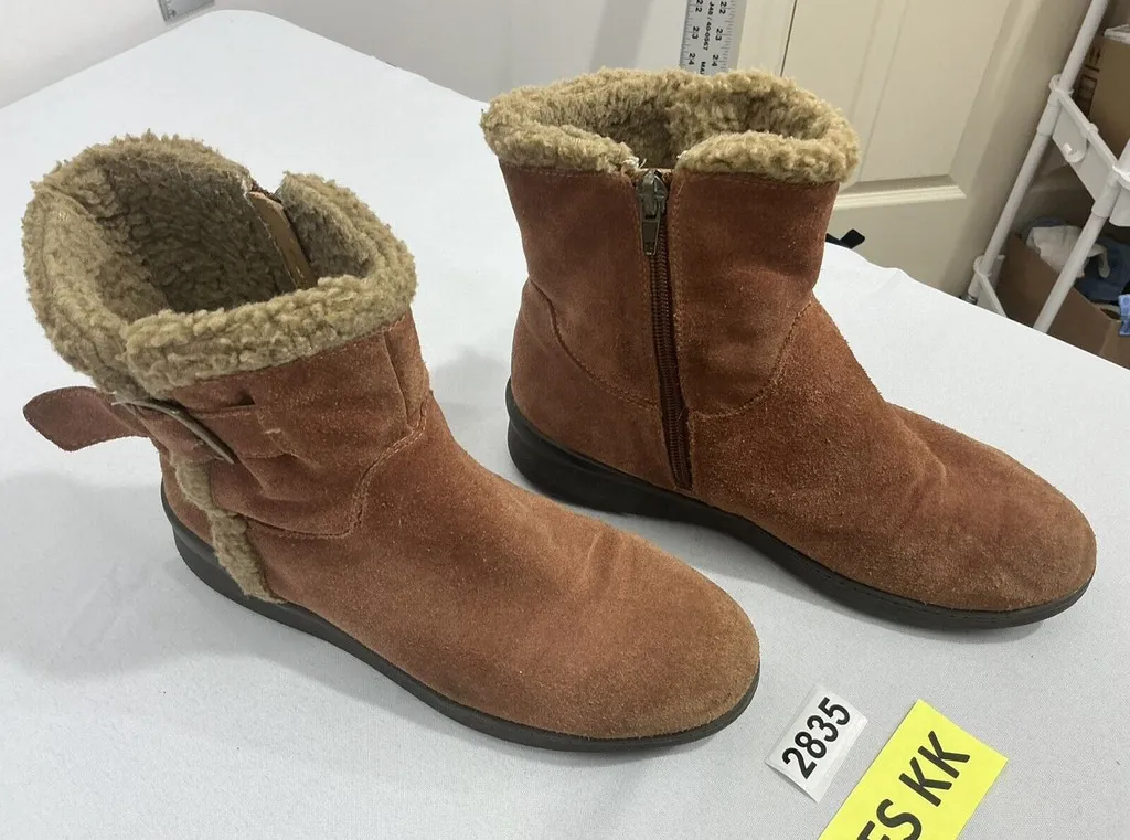 Elevate your footwear collection with these stylish size 7 ankle boots from Easy Spirit. Crafted from premium suede material, these boots come in a chic cognac brown color that easily complements any outfit. The bootie style is perfect for a sleek and modern look, while the buckle accent and zip closure add a touch of sophistication to your outfit. These boots are perfect for women who love comfortable and practical shoes without compromising on style. The Easy Spirit boots have a shoe shaft style that supports the ankle, making them perfect for everyday wear and the versatile design allows them to be paired with any outfit. These boots are pre owned and look to be in very good condition!
